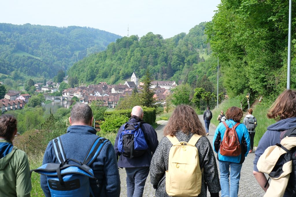 Fröhlich spaziert die magma AG ins mittelalterliche Städtchen Saint Ursanne.